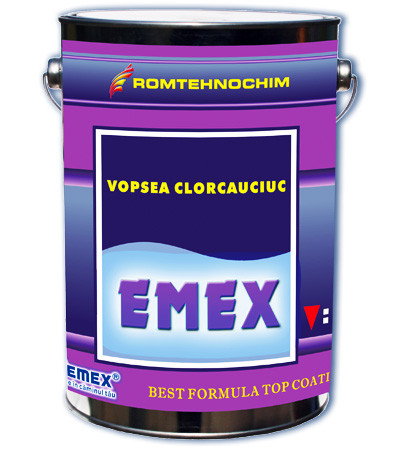 based on chlorinated rubber emulsions (Clortex, Pergamon, Alopren type), pigments, additives, plasticizers and specific solvents. The product, highly resistant to both water and friction has as main destination the use for covering the interior of the concrete pools or basins, and the metal surfaces, concrete or wood, either for protection or just for marking. The Alloprene “Emex” paint can be colored in any shade of the RAL color card.Main characteristics: